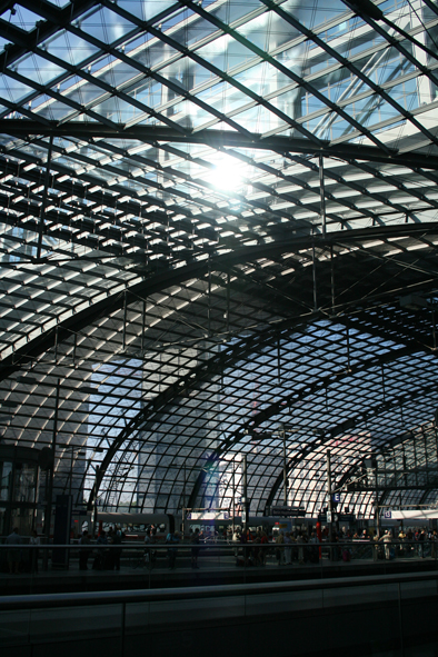 Am Samstag quäle ich mich morgens früh aus dem Bett. Der erste Zug ist mir etwas zu früh. Aber der zweite soll es schon sein. Kein Halt bis Berlin Spandau. Also noch mal Zeit zum Dösen bis ich um 8h42 am Berliner Hauptbahnhof aussteige und erstmal wieder die Architektur bewundern muss. 2006 kurz nach der Eröffnung war ich das bisher einzige Mal da. Erster Anfall von Knipseritis auf dem Weg zum S-Bahnhof: