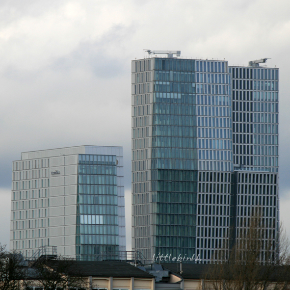 Nicht ganz, aber links: einer meiner Lieblinge – das Gerippte aka Westhafen-Tower