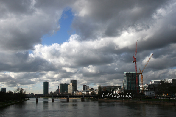 Von der neuen Osthafen-Brücke mit EZB (im Bau) in Vordergrund