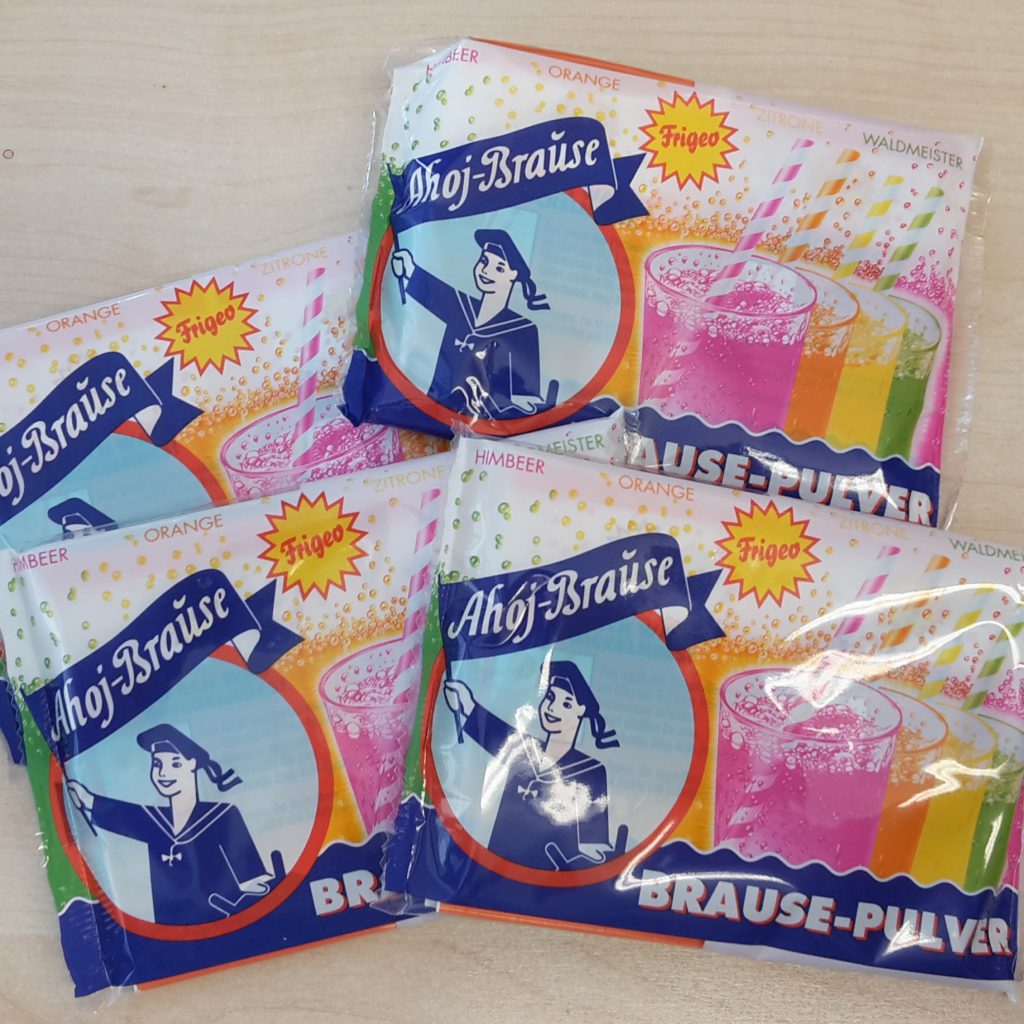 Daneben wird es noch Seifenblasen geben, weil es dazu auch einen Versuch geben wird und auch die gute alte, wirklich schwer erhältliche Ahoi-Brause wird eingesetzt. Drei Läden musste ich in Frankfurt abklappern, bis ich welche gefunden habe.