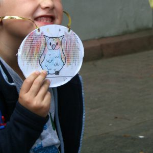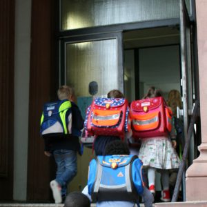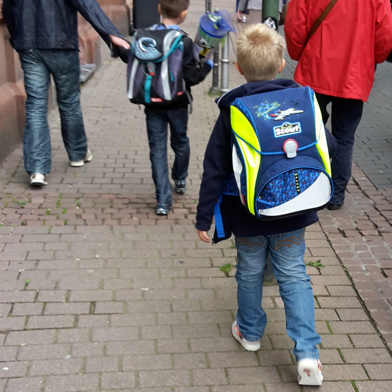 Dann gab es in der trotzdem aus allen Nähten platzenden Sporthalle eine kurzweilige Einschulungsfeier mit tollen Aufführungen der anderen Klassen der Grundschule. (Der Knieper-Alarm, der sich zwischendurch bei mir meldete, hatte wohl eher hormonelle, denn sentimentale Gründe.) Erfreulicherweise wurden die Kinder nicht dort einzeln aufgerufen und ihren Klassen zugeordnet. Stattdessen setzten wir die Prozession fort – ein Stück weiter zur Schule.