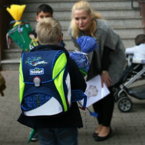 An der Schule versammelten sich die Kinder dann klassenweise. Ich fand es sehr nett, dass die Lehrerin nicht nur die Kinder einzeln begrüßte sondern auch uns Eltern (sofern man sich zu erkennen gab).