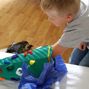 Zumindest für zwei Minuten. Danach wollte er sofort nach Hause. Ich „nötigte“ ihn, wenigstens noch auf die anderen Kinder zu warten, was allerdings noch einmal gut zehn Minuten dauerte. Das strapazierte die Geduld schon sehr. Und kaum das sie da waren und die kleine Ansprache gehalten war, drängte das Kind zum Aufbruch. Also wanderten wir noch einmal 450 Meter.