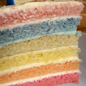 Auch wenn ich gerne backe, bin ich ja schon eine Minimalistin und habe mich deswegen auch immer um den großen Trend der Regenbogen-Torte gedrückt. Aber einmal im Leben darf muss man das wohl machen und wann, wenn nicht zur Einschulung.