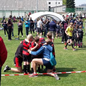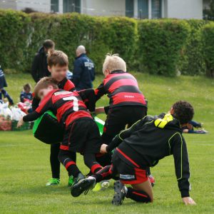 Zwei Tage Rugby-Jugendfestival liegen hinter uns. Und es war toll! Es war toll, dass der Kv extra gekommen ist. Es war bestes Wetter. Es waren viele entspannte Menschen da. Es waren tolle Erfahrungen für das Team, die Mannschaften und den midi-monsieur im Einzelnen. Ich weiß, dass ich im Notfall auch als Bardame arbeiten könnte. Es war – obwohl Rugby sicherlich kein Gruppenkuscheln ist – unglaublich fair. Auch unter den Eltern. Es war hervorragend organisiert. Wir hatten viel Spaß.