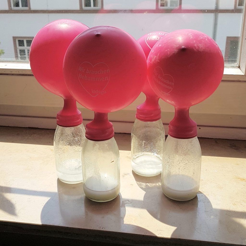 Eifrig waren sie auch dabei, als sie – in zugeteilten Kleingruppen – CO2 erzeugen sollten, um Luftballons aufzupusten.