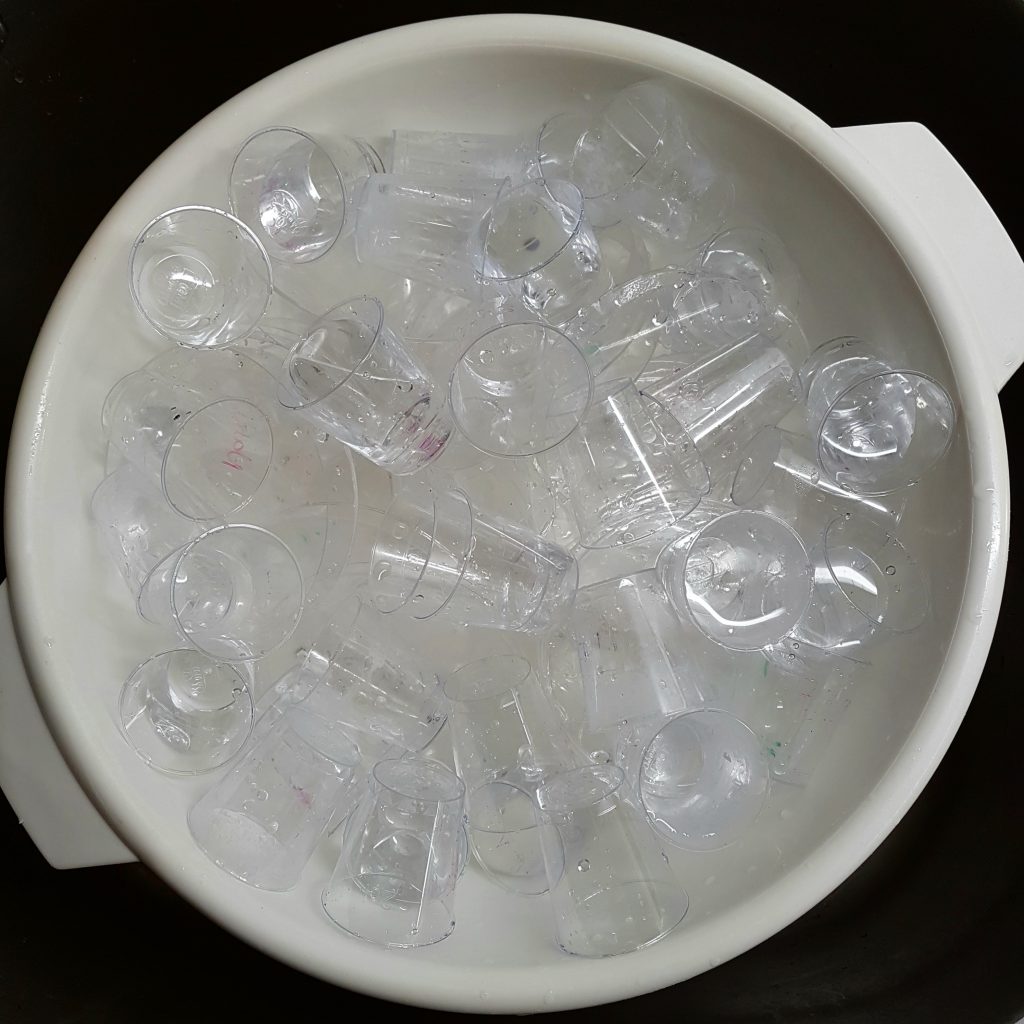 ** Auch wenn das Einmal-Pinnchen sind, spüle ich die, weil ich nicht drölf Millionen davon verschwenden will. Und da war ja nichts Schlimmes drin