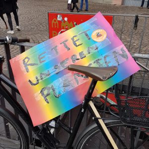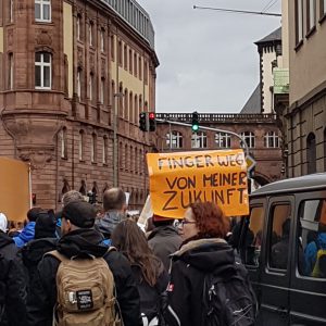 Und ich musste erstmal mit meiner Ergriffenheit fertig werden. Um mich rum ganz viele junge Menschen – im Schnitt ein Vierteljahrhundert jünger als ich – und skandierten so kreative wie treffende Demo-„Gesänge“. Ich hatte einen Kloß ihm Hals und musste mit den Tränen kämpfen. So viele Kinder und Jugendliche, die definitiv nicht einfach nur „schwänzten“, sondern denen es um die Sache geht. Wow! Auch das Kind war zunächst ganz still.