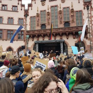 Wir liefen mit bis zum Römer, wo die Demo endete, und blieben auch noch ein Weilchen für die Abschlusskundgebung. Und auch da dachte ich „wow“, denn die Redebeiträge der Schülerinnen waren deutlich, klar und auf den Punkt. Sie machten klar, wofür sie auf die Straße gehen. Und sie machten klar, dass sie nicht „aus Spaß an der Freude“ schwänzten vom Unterricht fernblieben.