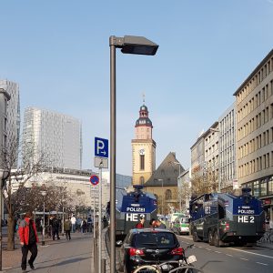 Dann wechselte ich folgte ich den Wasserwerfern über Friedensstraße und Kaiserstraße zur Hauptwache, wo die #GegendenRechtsruck-Demo erwartet wurde …