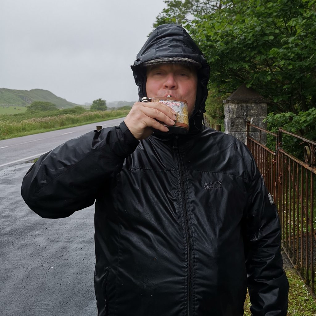 • über Nachmittag zwei Achtel im Regen und in Destillerien,