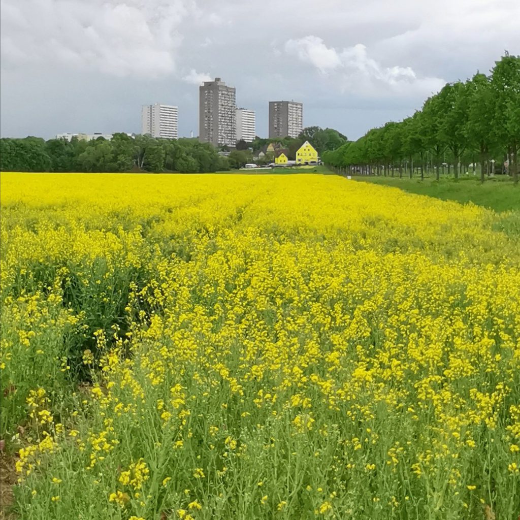 Ich lief entlang der Nidda und es war erfreulich wenig los. Die paar anderen Spaziergänger und -fahrer waren überschaubar und hielten auch Abstand. Ich sammelte Sonne, frische Luft und #Blümchenspam. Bei Kilometer 7 hatte ich kurzfristig keine Lust mehr, aber da war ich gerade durch Berkersheim durch und dann hätte ich umdrehen müssen, um zum ÖPNV zu kommen. Also lief ich weiter und stieg dann erst an der BGU in den Bus – nach 11 Kilometern.