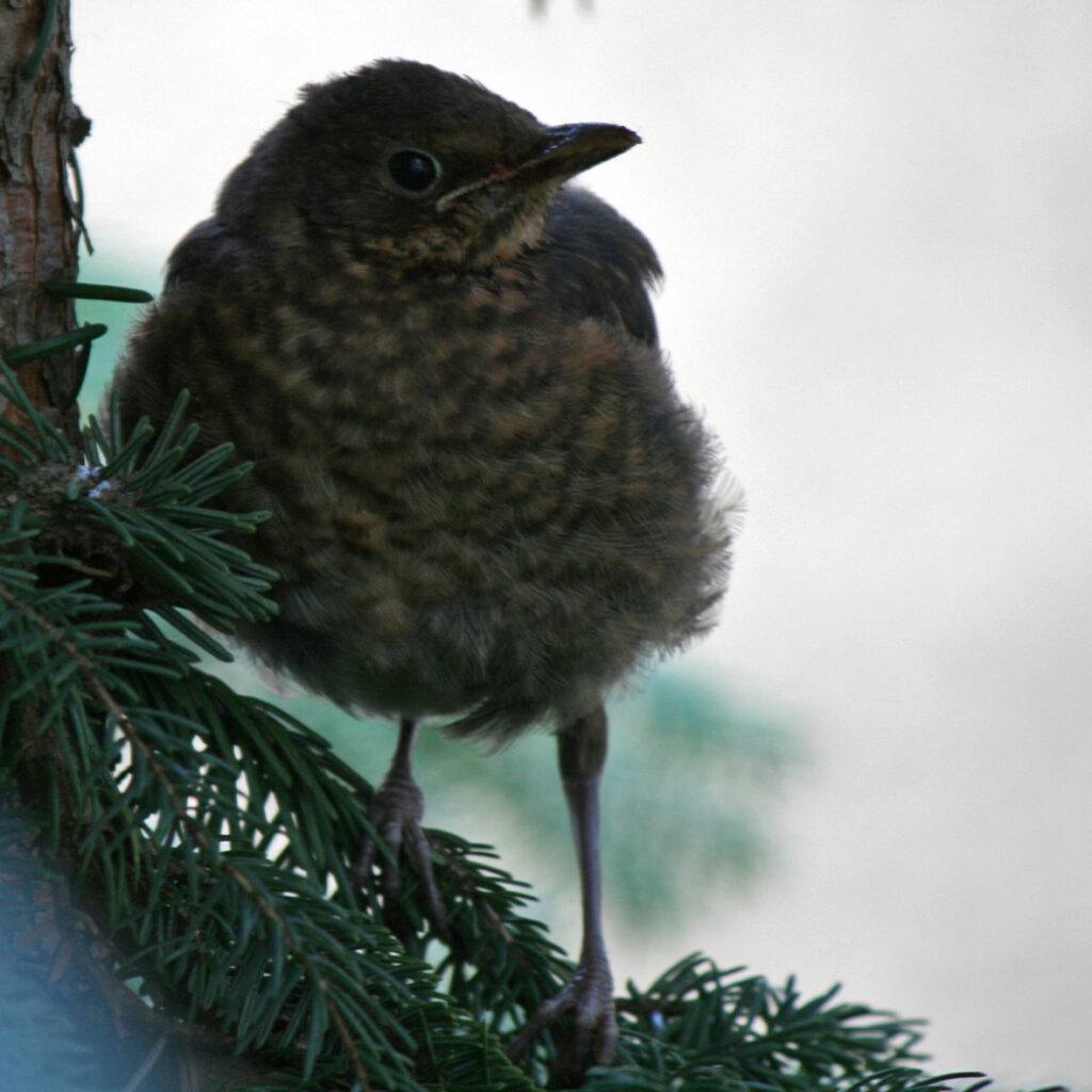 Wir haben ein Amselbaby im Hof wohnen.**** Das ist schon ein bisschen niedlich. Und das Kind ist auch niedlich, wie andächtig er zuguckt und auf dem Balkon rumschleicht, um es nicht zu erschrecken und zu beobachten.
