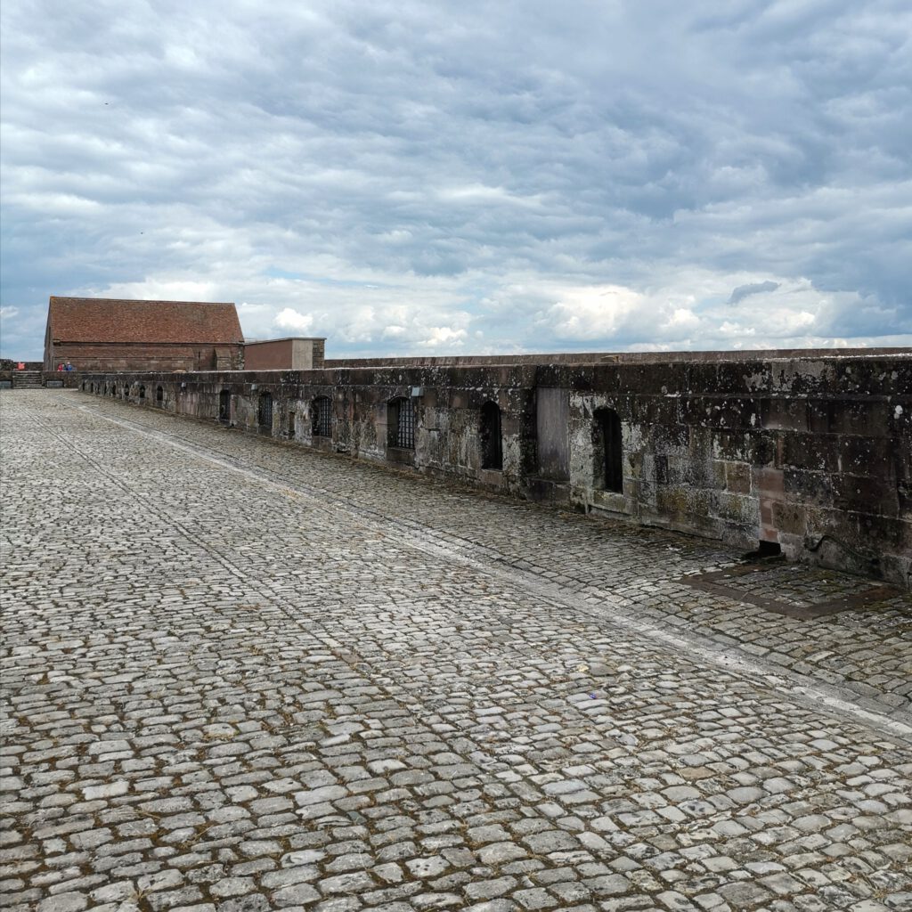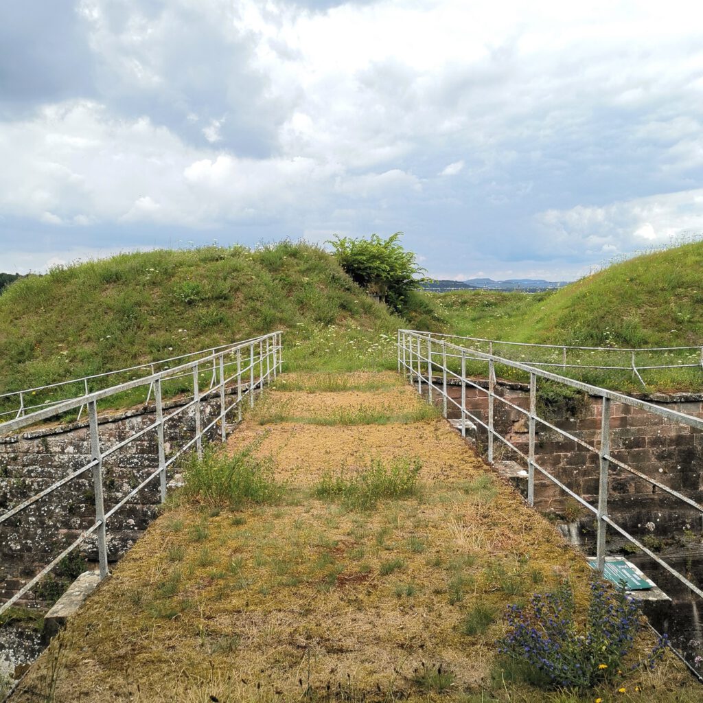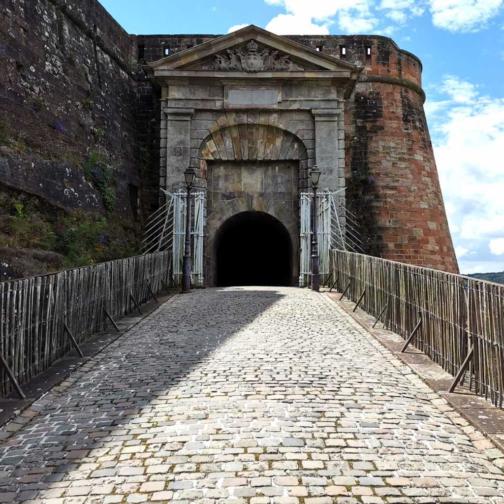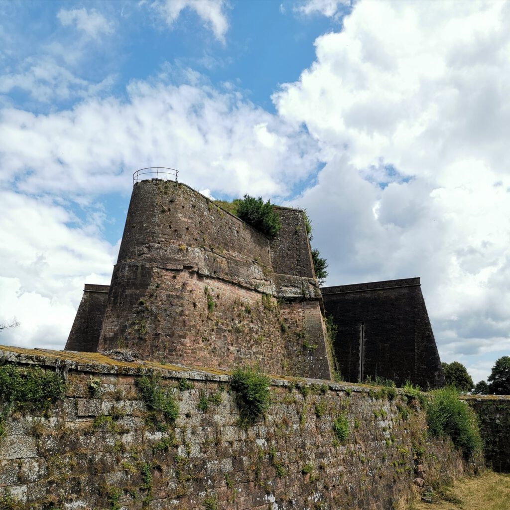 Keine Wanderung heute. Immerhin können wir Bitche nicht verlassen, ohne auf der Burg gewesen zu sein. Nach einen späten Frühstück gehen wir zur Mittagszeit los. Der Aufstieg ist immer noch steil und anstrengend. Um zum Eingang zu kommen müssen wir einmal an der Langseite lang.