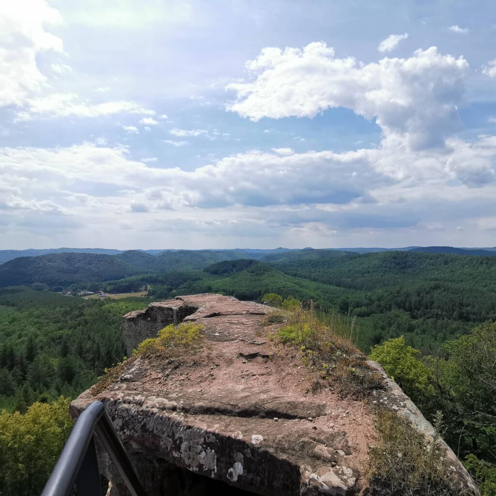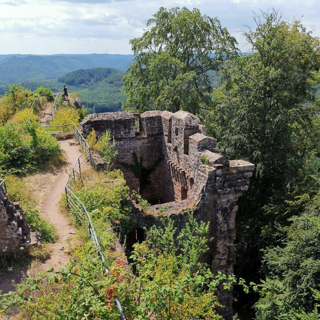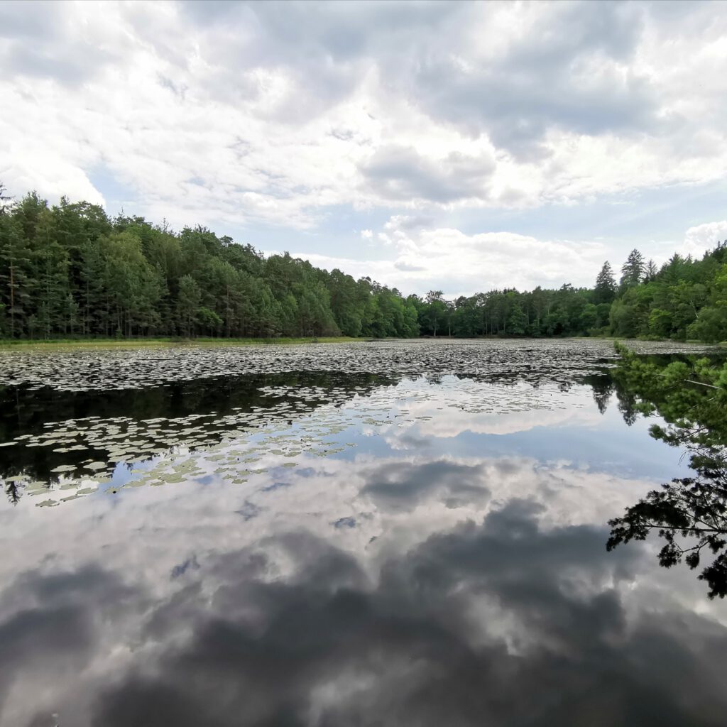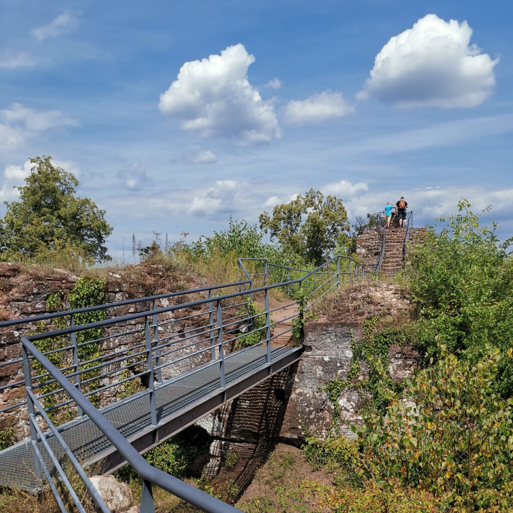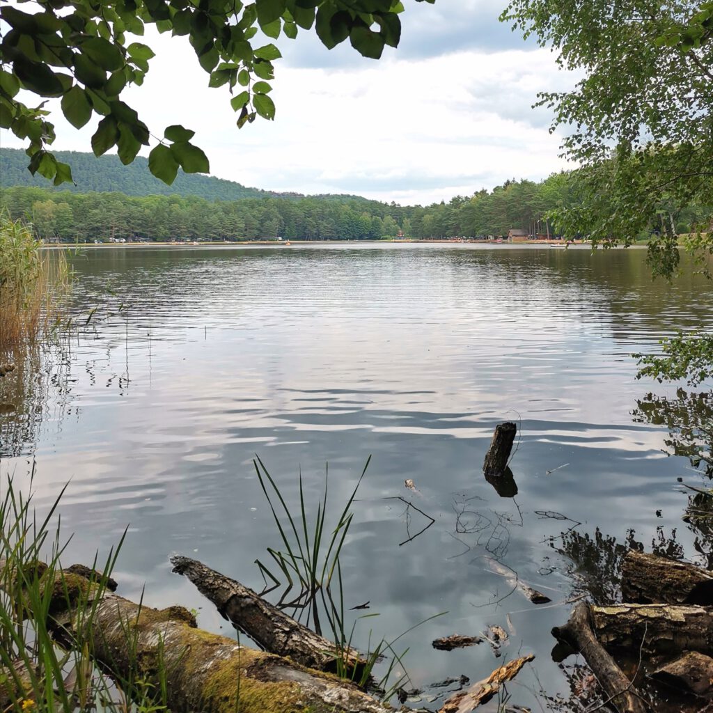 Allerdings ist es mir irgendwann zu blöd einfach nur rumliegen. Wir wollten heute nochmal Burgen Ruinen gucken. Ich plane mit Else (aka Komoot) eine Tour. Wir gucken, wo wir essen können. Herrje, ist das schwierig, hier was Passables zum Essen zu finden. Aber wir einigen uns auf ein Restaurant in der Nähe der geplanten Tour. Der RB reserviert zur Sicherheit. Dann geht es los. Um uns schon mal aufs Rhein-Main-Gebiet einzustimmen, beginnt die Tour am Étang de Hanau-Weiher.