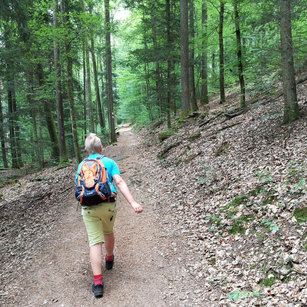 * So hat der RB das Kind unterwegs getauft, weil er, also das Kind, beim Wandern immer mit mir kuscheln will. Bei breiten Wegen verlange ich daher vom Kind, dass er eine Armlänge Abstand hält. Bei fortwirtschaftlich genutzten Wegen mit Fahrzeugspuren geht das Kind in der einen „Fahrrinne“ und ich in der anderen. Sorry Kind, aber so gerne ich dich kuschel, aber NICHT beim Wandern!