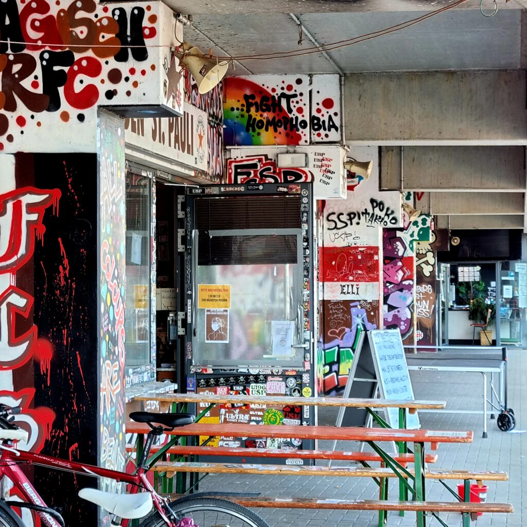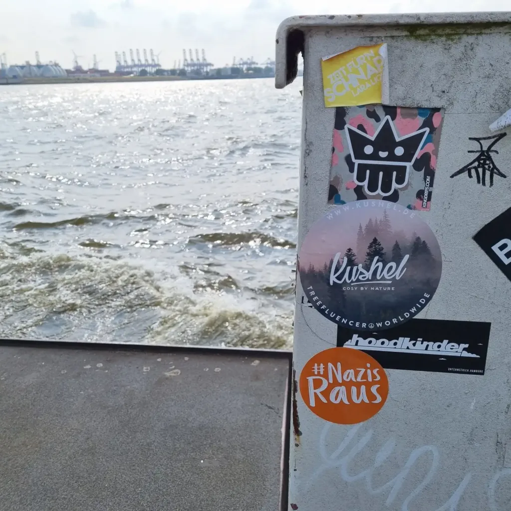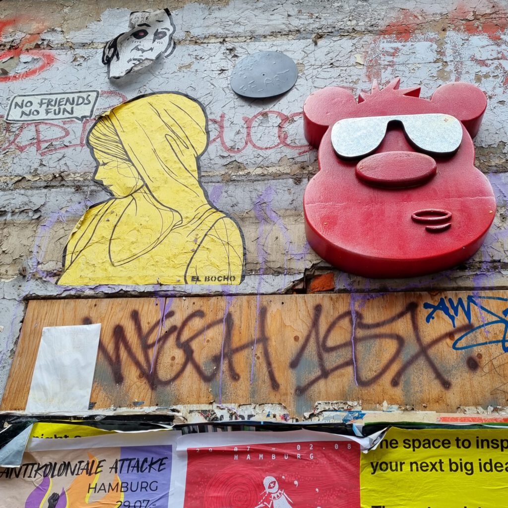 Eigentlich hatten wir führ heute Hin- und Rückfahrt nach Helgoland gebucht. Uneigentlich bekam ich bereits gestern die Nachricht, dass die Fahrt nicht stattfände wegen Sturm. Wir entschließen uns für einen 3. Tag in Hamburg – nachdem ich unsere Fahrt nach Heögoland erfolgreich auf morgen umbuchen konnte. Also fahren wir wieder mit dem Auto bis Finkenwerder, steigen auf die Fähre und steigen wieder … äh … diesmal am Altonaer Fischmarkt aus. Wir kommen 600 Meter weit, um dann erstmal ausgiebig im Café Geyer zu frühstücken. Gestärkt lassen wir uns durch St. Pauli und die Schanze treiben. Nach einem Drink ergibt es sich, dass ich für den Rest den Tages mit einer Kiste Weingläser unterwegs bin. Wir essen im P’Ti Breizh im Karoviertel großartige Galettes und Crêpes. Tschüss, Hamburg. Drei Tage waren definitiv kein Tag zu viel.****