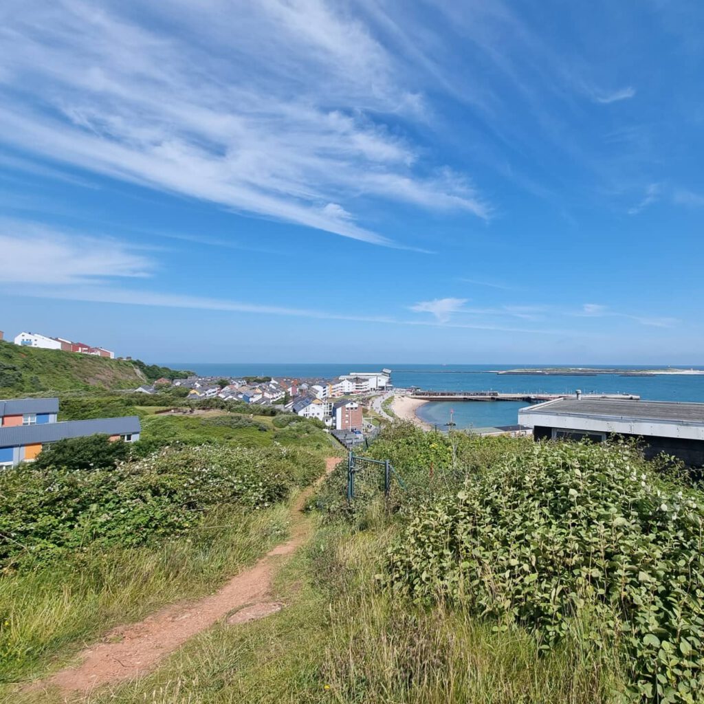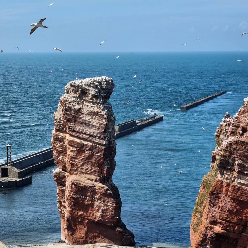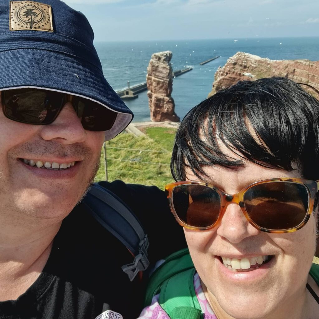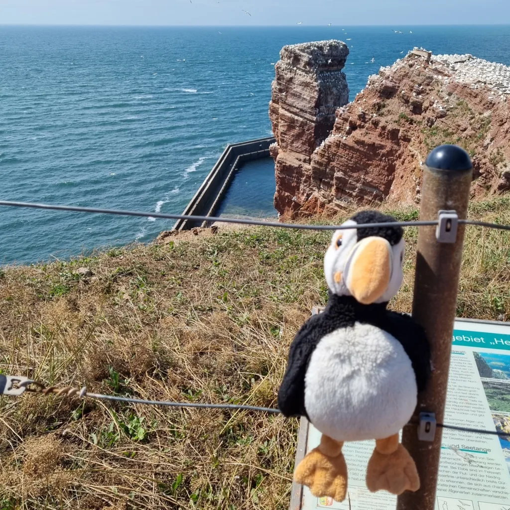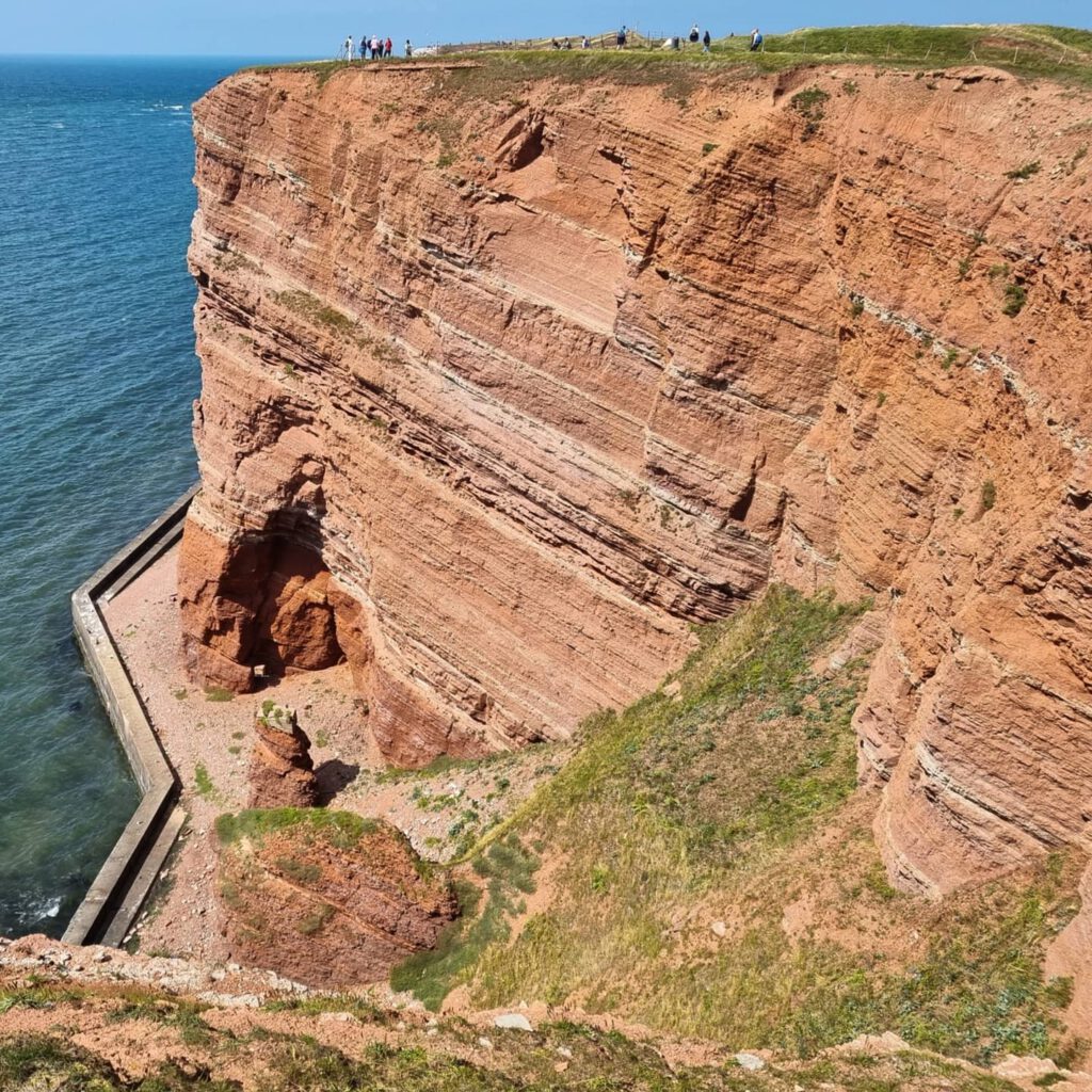 Keine Nachricht, es geht nach Helgoland. Erstmal müssen wir nach Cuxhaven. Als wir abfahren, ist es noch entspannt. Doch irgendwann nimmt der Seegang zu und auch der HalunderJet muss nun über die Wellen hüpfen. Mir ist nicht gut und ich bin froh, dass ich einen Fensterplatz habe und mich auf den Horizont konzentrieren kann. Ich bin froh, als wir endlich anlegen. Auf Helgoland erwartet uns bestes Wetter. Der RB und ich versuchen, jenseits der allgemeinen Menschenströme Wege zu finden. Das ist nur bedingt möglich, aber auf dem Klippenrandweg verläuft es sich etwas. Insgesamt haben wir 4,75 Stunden auf der Hochsee-Insel. Das reicht für einen Gang zur Langen Anna und zurück. Die Rückfahrt ist entspannt. Und als wie wieder Festland unter den Füßen haben, gehen wir im Hus Op’n Diek***** essen. Schöner Urlaubsabschluss.