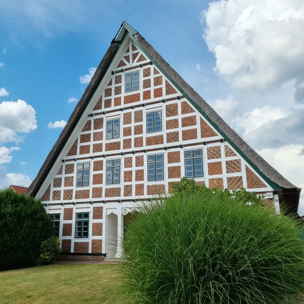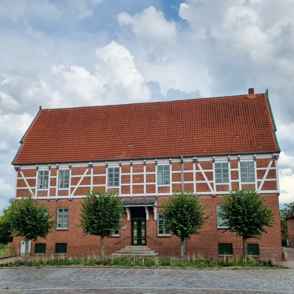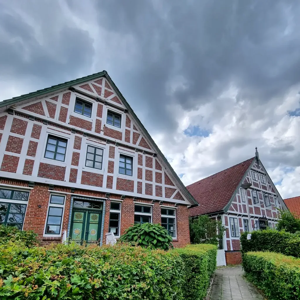 Nachdem wir eingeräumt haben und ich meinen letzten Text fertig gemacht habe, gehen wir eine Runde durch Jork. Eigentlich wollen wir essen gehen, aber das ausgwählte und alle anderen Restaurants in Jork haben zu. Wir stellen fest, dass sämtliche Restaurants im Alten Land nicht auf urbane Essgewohnheiten ausgelegt sind. Außerdem besteht das Alte Land tatsächlich nur aus Obstbäumen und hübschen Häusern von Obstbauern.