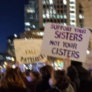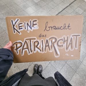 Ein Satz, der mir von der „Feuer und Flamme dem Patriarchat“-Demo nachhängt: Während von FLINTA* mittlerweile erwartet wird, dass sie 100 Prozent Erwerbsarbeit und so ihren „gleichen“ Anteil am Haushaltseinkommen leisten, teilen sich Erziehung, Haushalt etc. nach erledigter Erwerbsarbeit nicht gleichberechtigt auf.c Für mich als Alleinerziehende ist das natürlich nicht ganz mein Thema, denn hier gibt es niemanden, mit dem ich mir die Care-Arbeit aufteilen kann.