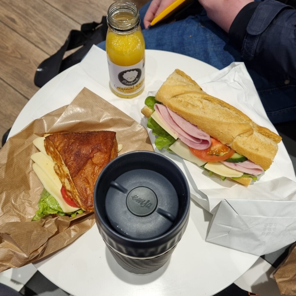 Jippiejuchuhuuu, das Kind mach Ferien beim Kv und ich habe endlich mal wieder kindfrei. Dafür habe ich auch in Kauf genommen, dass ich heute um 6h00 aufstehen musste, damit wir pünktlich gegen 8h00 am Flughafen sein konnte. Nachdem er eingescheckt und für den UMNR-Service angemeldet war, hatten wir noch Zeit und gönnten uns ein Frühstück im Gegenwert einen Niere.