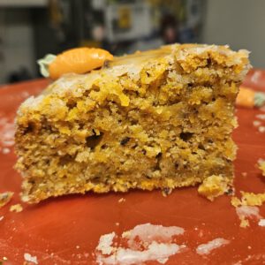 - ca. 300 g Möhren (geschält und fein gerieben) und 200 g gemahlene Haselnüsse/Mandeln unterheben